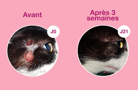 Traite l'inconfort caché : Malgré une surface apparemment normale, les chats peuvent souffrir de démangeaisons ou d'irritations sous-jacentes qui ne sont pas immédiatement visibles. Les changements microscopiques de la peau, même lorsqu'elle semble normale, peuvent contribuer à de futures rechutes. Une routine est essentielle pour traiter ces inconforts subtils qui pourraient autrement passer inaperçus et limiter les récidives.