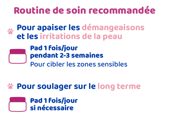 Traite l'inconfort caché : Malgré une surface apparemment normale, les chats peuvent souffrir de démangeaisons ou d'irritations sous-jacentes qui ne sont pas immédiatement visibles. Les changements microscopiques de la peau, même lorsqu'elle semble normale, peuvent contribuer à de futures rechutes. Une routine est essentielle pour traiter ces inconforts subtils qui pourraient autrement passer inaperçus et limiter les récidives.