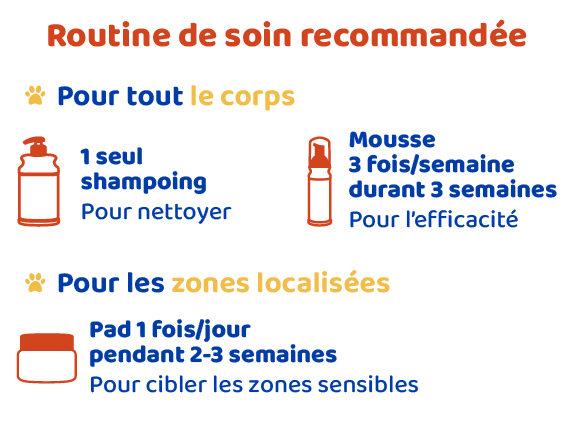 Des facteurs externes peuvent perturber l'équilibre de la peau des chats et des chiens, permettant à des germes nocifs de se développer. En présence de tels signes, il convient de consulter un vétérinaire pour obtenir un diagnostic et une solution appropriés. Utilisez le shampooing DOUXO® S3 PYO pour désinfecter et contribuer à rétablir un microbiote cutané sain.