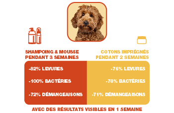 La levure Malassezia se développe sur les peaux fragilisées, provoquant des problèmes visibles ; DOUXO® S3 PYO est scientifiquement prouvé pour réduire de manière significative les niveaux de levure en 7 jours (et les meilleurs résultats après 3 semaines), le contact prolongé de la mousse renforçant l'efficacité.